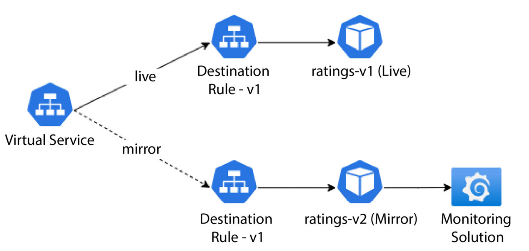 - Deploy a new version of the application and activate traffic mirroring.